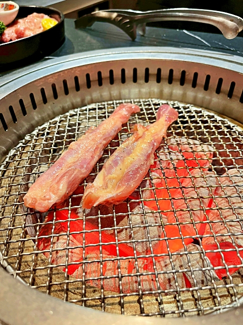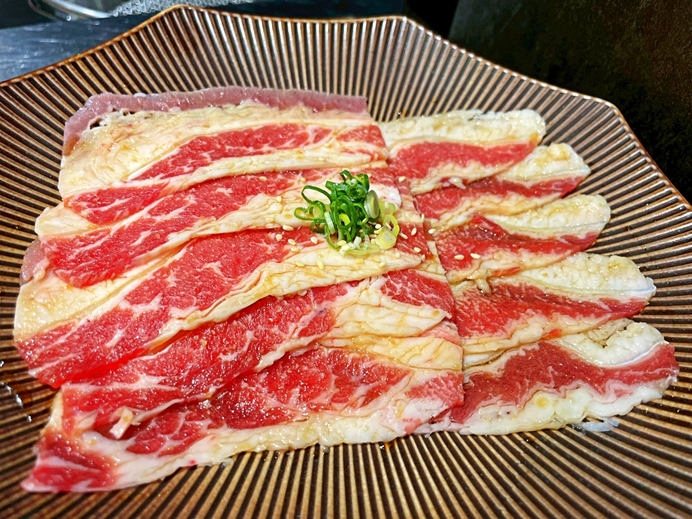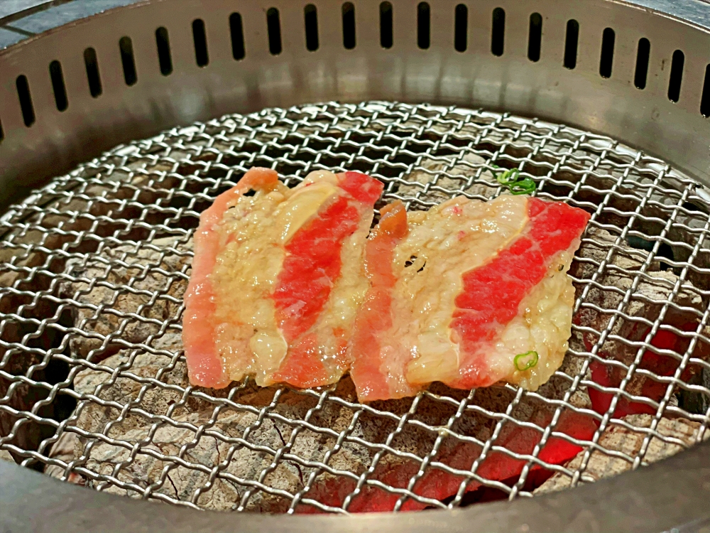 後腹肉:我私心很愛這塊。沒有五花那麼油,但味道更濃。帶點嚼勁越嚼越香,超級耐吃。牛肋條:這個要耐心烤,會越烤越香。口感 Q 彈、有咬勁,由於烤至微焦最讚了。
