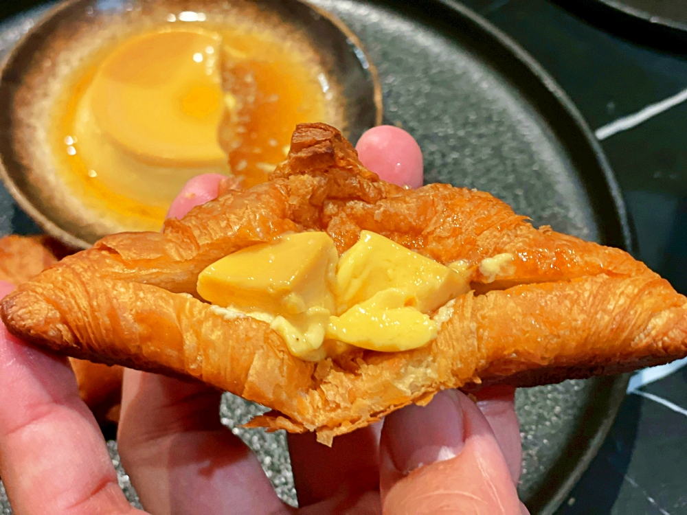 這道讓我很驚喜。布丁夾上熱可頌後居然變成一種「溫熱卡士達」的口感,香甜但不膩,非常有創意。