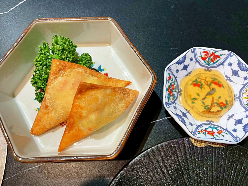 外皮香脆,咬下去是濃郁起司與蟹肉的組合,沾上特製酸甜醬後完全停不下來,是整套裡我會想再單點的品項。