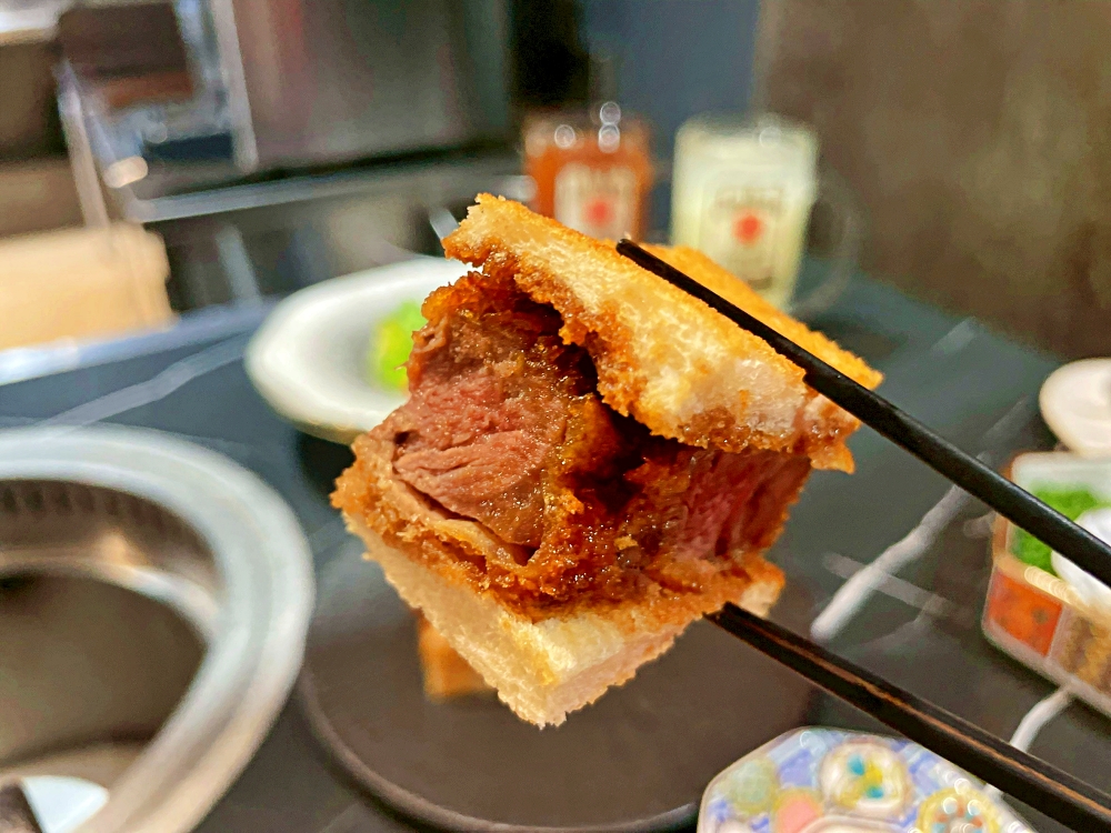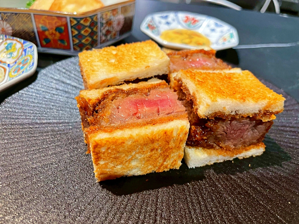 炸牛排三明治(加購):外酥內嫩,牛排厚實、麵包柔軟,是那種一端上桌就會被秒掃光的存在。